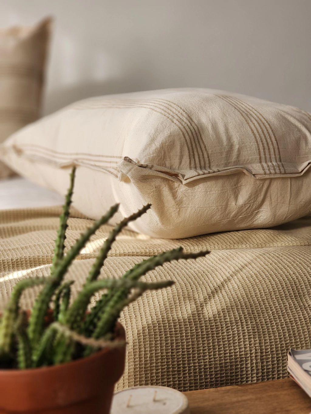 FUNDA RAYADA PARA ALMOHADÓN MADRID XL TUSOR 90x60 ¡Dale a tu almohadón el cambio de look que se merece! Esta funda rayada en tela tusor 100% algodón es tan cómoda que hasta tu almohadón querrá quedarse todo el día. Con cierre oculto para mantener todo en secreto y medidas XL 90x60 para un abrazo extra. Lavala sin drama y disfrutá de un estilo renovado y divertido en tu hogar. ¿Listo para la revolución de almohadones?